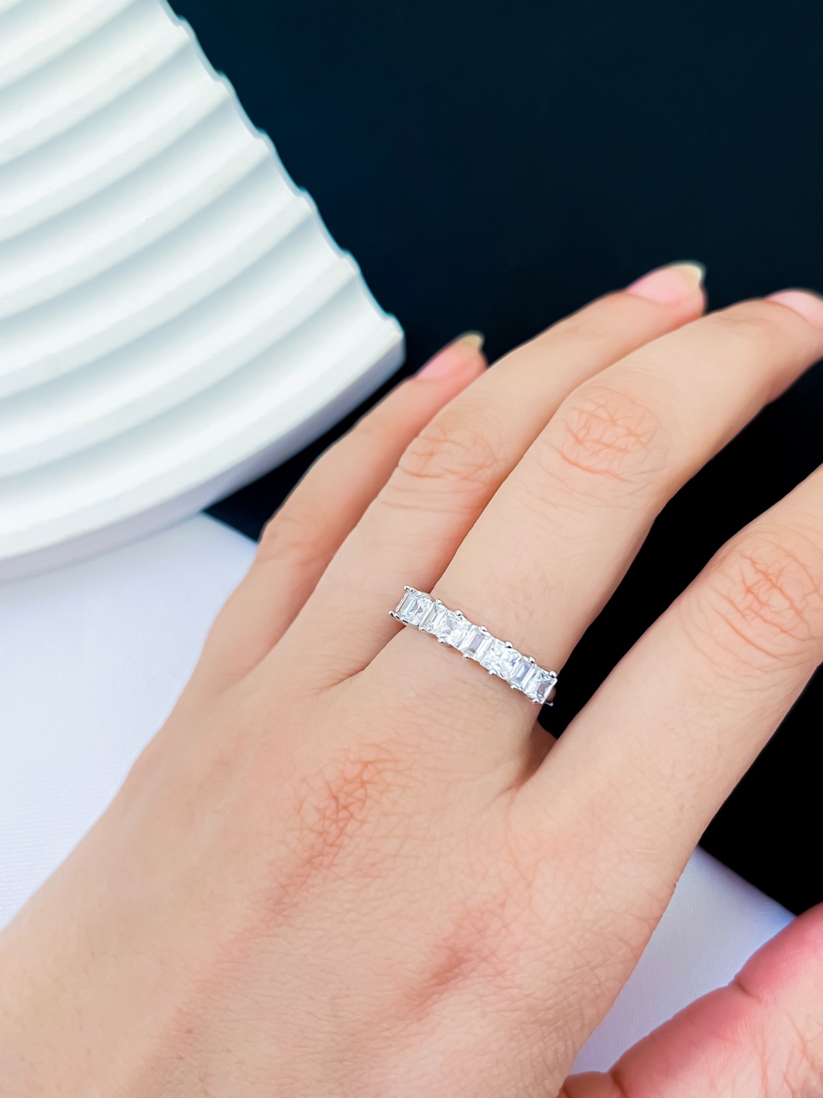 Anel Aparador Zircônia Baguete em Ródio Branco quantidade