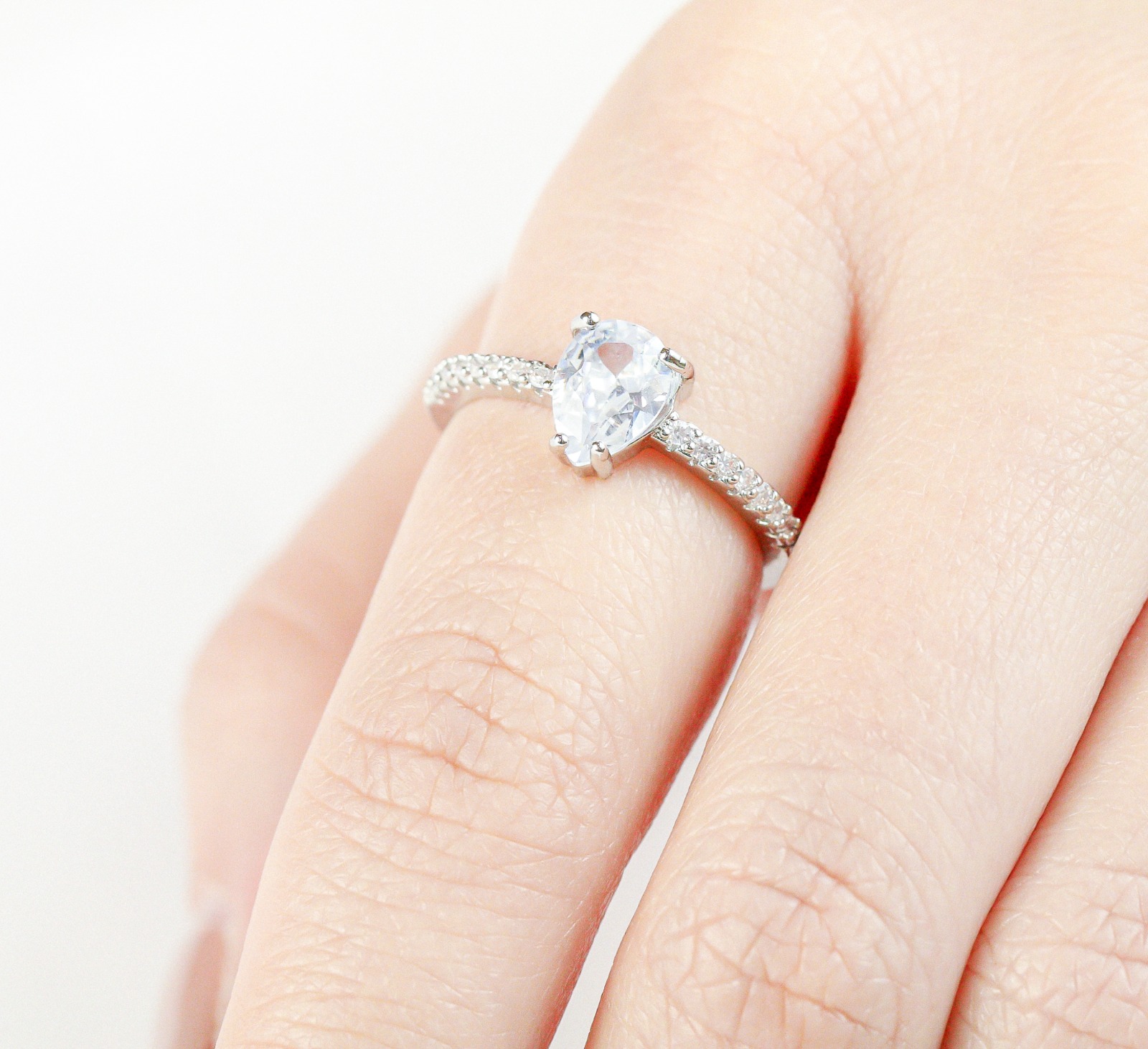 Anel ponto de luz gota e micro Zircônia em Ródio Branco