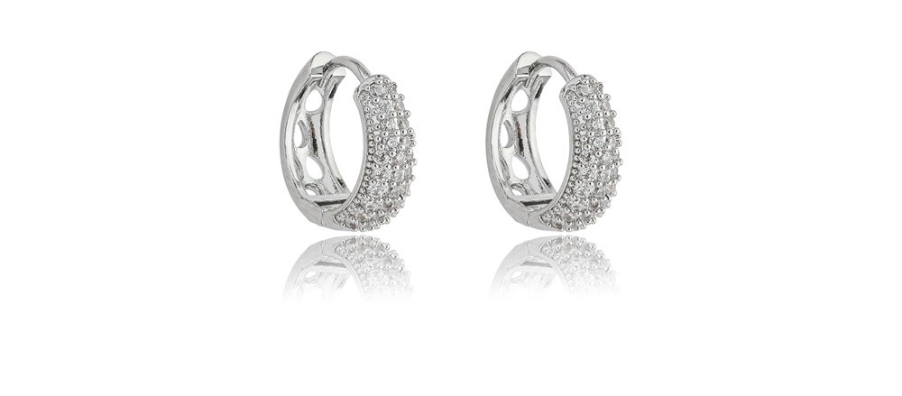 Brinco G Argola Cravejada Delicada em Ródio Branco