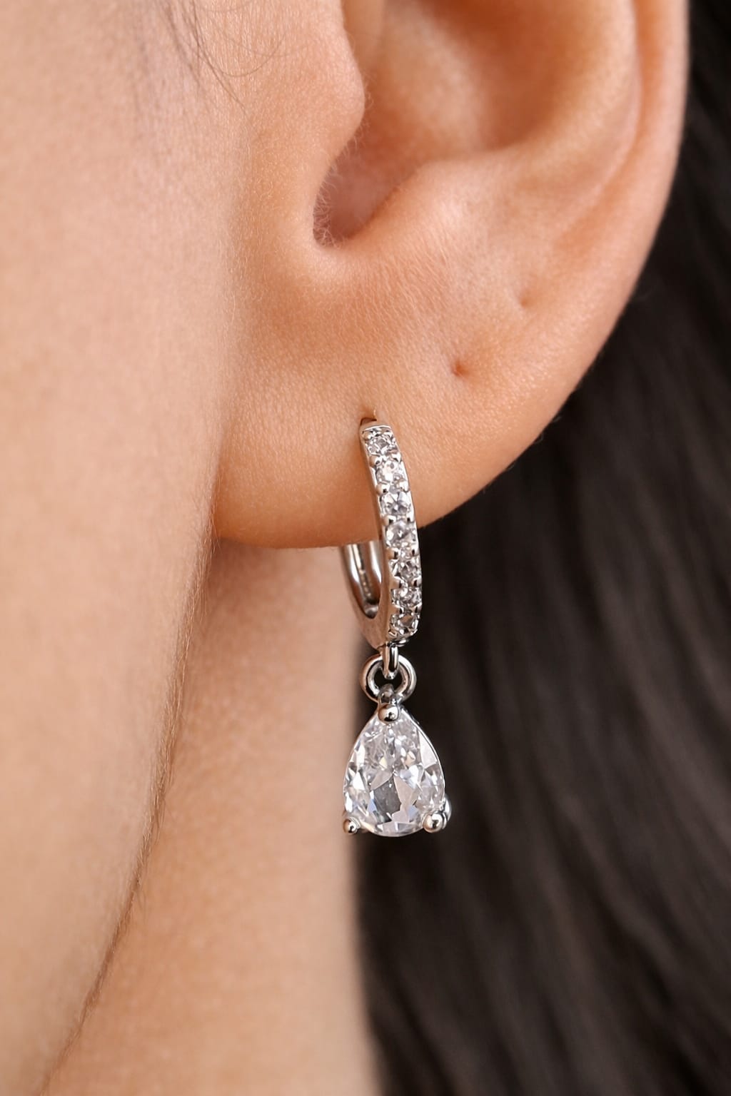 Brinco P Gota com Micro Zircônias em Ródio Branco