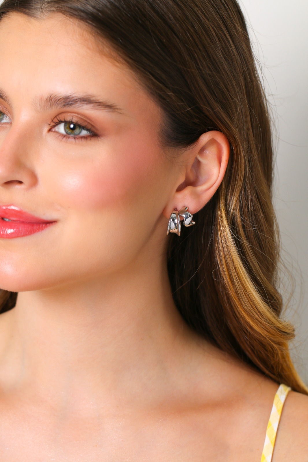 Brinco Duplo Zig Zag Liso e Argola Lisa com Detalhe Enrolado em Ródio Branco