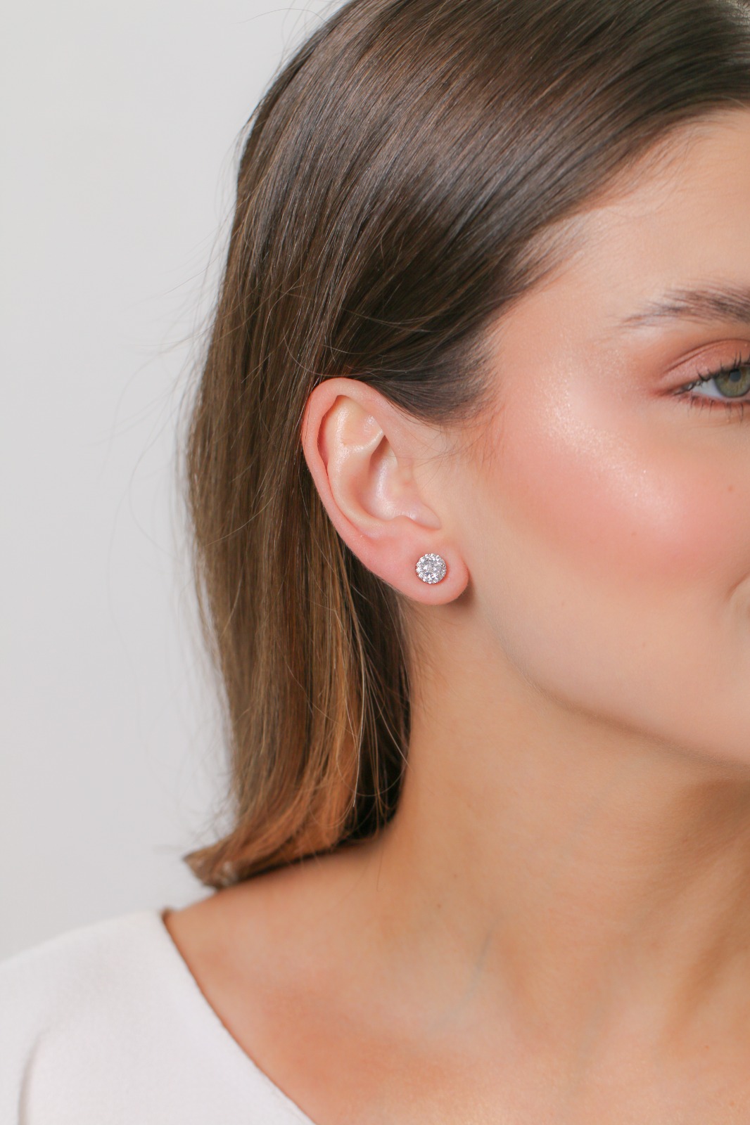 Brinco Ponto de Luz Pequeno com Contorno Cravejado em Ródio Branco